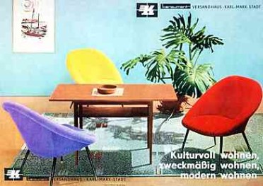 | "kulturvoll wohnen - zweckmäßig wohnen - modern wohnen", konsument - Versandhaus Sonderwerbung (1964) | | Konsum-Versandhandel - "Schalensessel, besonders geschmackvolle und elegante Form." (1964)
