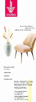 | |  | | | VEB DEUTSCHE WERKSTÄTTEN HELLERAU - "MDW PROGRAMM MIT IDEE", Katalog (1967) | | VEB DEUTSCHE WERKSTÄTTEN HELLERAU - "Formgebung und Verarbeitung bestimmen den Wert", Zeitschriftenwerbung (1967)