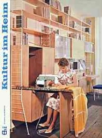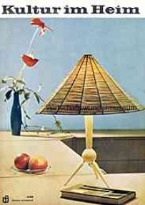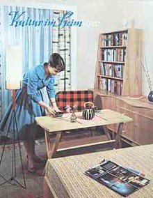 | | "KULTUR im HEIM", Heftumschlag-Rückseite (1960) | | Kultur im Heim - Titel: "Plastwerkstoffe, diese "Allerweltsmaterialien" der Neuzeit, stellen wir in diesem Heft vor." - Weitere Themen z.B.: "Zukünftige Wohnform in Stalinstadt bereits Wirklichkeit", "Die Form des Unscheinbaren" (1961) |