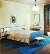 | Kalender "Kultur im Heim 1960" - Das Schlafzimmer "gehört zum Typ der französischen Schlafzimmer. Der Federboden ist durchgehend. Die Maße sind 190 mal 150cm."