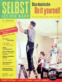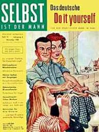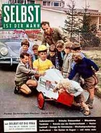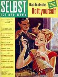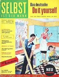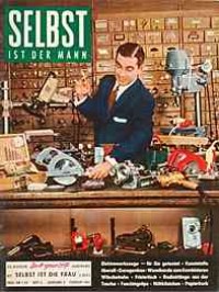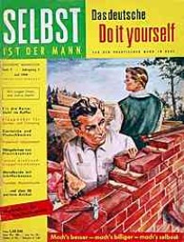 “Unrast der Zeit – Überforderung – Spezialistentum – Managerkrankheit. Das sind Begriffe, die immer wieder wie rote Warnsignale durch unsere Tage geistern. Immer von neuem wird darauf hingewiesen, dass sich der Mensch durch seinen jetzigen Tatendrang und das erzwungene Mitlaufen im heutigen übersteigerten Tempo des wirtschaftlichen Geschehens selbst sein Grab grabe“. Dieses nach wie vor zeitgemäß klingende Zitat ist nicht etwa einem Gesundheitsratgeber unserer Tage entnommen, sondern stammt aus einem 1959 im Heimwerker-Magazin Selbst ist der Mann veröffentlichten Artikel, in dem die Hintergründe der aus Amerika nach Deutschland übergeschwappten ’Do-it-yourself’ –Welle beleuchtet werden. So ist der Griff nach Hammer, Säge und Bohrmaschine nicht mehr allein durch eine mögliche Kostenersparnis beim Selbermachen motiviert, sondern dient mittlerweile vielen Berufstätigen als „Ausgleichssport“ nach einem anstrengenden Arbeitstag. Die westdeutsche Wirtschaft floriert und erstmals seit 40 Jahren gibt es wieder mehr freie Stellen als Arbeitslose, was nicht zuletzt der übergroßen Leistungsbereitschaft der Menschen in den Aufbaujahren nach Kriegsende zu verdanken ist. Mittlerweile jedoch schießen nicht wenige über das Ziel hinaus. Sie sind nicht mehr in der Lage, nach Feierabend oder am Wochenende einfach nur dem Nichtstun zu frönen und verwehren derart Körper und Seele die Möglichkeit zur notwendigen Regeneration, für die Ausübung traditioneller Entspannungshobbies wie Briefmarkensammeln oder Angeln fehlt ihnen die erforderliche innere Ruhe. Die Lösung für diese Gruppe von Rastlosen kommt aus den USA und heißt ‚Do-it-yourself’. Dabei handelt es sich nicht etwa nur um die bloße amerikanische Übersetzung für ‚Selbermachen’, sondern vielmehr um eine auf wissenschaftlichen Erkenntnissen basierende Bewegung mit der Philosophie, dass durchaus auch körperlich anstrengende handwerkliche Freizeitaktivitäten die unerlässliche Erholung verschaffen können. Von maßgeblicher Bedeutung für den angestrebten Erfolg ist jedoch, dass sich die Art der hierfür gewählten Tätigkeit grundlegend von der beruflichen unterscheiden muss. Dass man auf diese Weise auch eine Menge Geld sparen kann, ist natürlich ein willkommener Nebeneffekt. “Bastle nicht mehr so, wie dies zur Zeit unserer Eltern üblich war, als sich mit diesem Begriff die Anfertigung wenig praktischer, verspielter Dinge verband, die bald auf dem Speicher verstaubten. Eine Do-it-yourself-Betätigung bedeutet vielmehr, praktische Dinge des täglichen Gebrauchs zu schaffen“, erklärt Selbst ist der Mann, die im November 1957 erstmals in den Regalen der Zeitschriftenhändler zu findende „deutsche Do it yourself Illustrierte“ ihren Lesern. Zeit dafür steht den Arbeitnehmern in zunehmendem Maße zur Verfügung. Zwar arbeiten über 7 Millionen Bundesbürger noch 48 Stunden und mehr in der Woche, doch haben laut einer im Oktober 1958 veröffentlichten Statistik bereits 30 Prozent aller Väter regelmäßig und weitere 27 Prozent alle 14 Tage sonnabends frei. Doch die vermehrte freie Zeit birgt auch Gefahren: