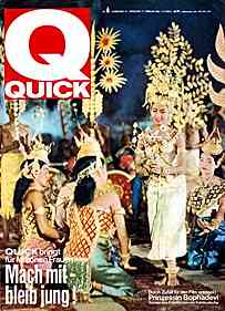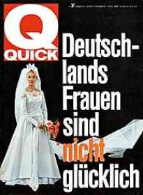 | stern - Titel: "Sklavenarbeit in der Küche gibt es heute nicht mehr, denn die moderne Braut kauft schon bei der Eheschließung die kräftesparende Küche nach Maß" - Themen z.B.: "Die Küche nach Maß", "Was kostet die Welt? Ein Katalog für Fernwehkranke, angeboten von westdeutschen Reisebüros" | | QUICK - Titelthema: "Deutschlands Frauen sind nicht glücklich" - Weiteres Thema z.B.: "Gestalten wir unseren Schlaf falsch? Bei Schlafgestaltern und Bettforschern" | | QUICK - Titel: "Durch Zufall für den Film entdeckt: Prinzessin Bophadevi - Tochter des Präsidenten von Kambodscha" - Themen z.B.: "Amerikas Weltraumfahrer John Glenn zu QUICK: Kann ich mehr von Gott verlangen?", "Spaniens Küste fest in deutscher Hand", Fortsetzungsroman: "Johannes Mario Simmel - Bis zur bitteren Neige" |