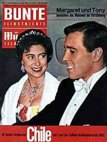| | BUNTE ILLUSTRIERTE - Titel: Prinzessin Margaret / Lord Snowdon - "Margaret und Tony besuchten das Mahnmal der Versönung" - Weiteres Thema: "Chile - Das Land der Fußball-Weltmeisterschaft 1962 - König Fußball regiert am Ende der Welt" | | BUNTE ILLUSTRIERTE - Titel: "Sophia und Juan - Glücklich verheiratet" - Weiteres Thema: "Auf 10 Seiten erschütternde Farbfotos vom Bikini-Atoll: Generalprobe für den Weltuntergang" |