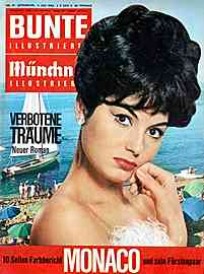 | NEUE ILLUSTRIERTE - Titel: "Marilyn Monroe - ausgebootet während der Dreharbeiten zu ihrem Film "Der Klügere gibt nach", verhandlt jetzt über ihr Comeback" - Thema z.B.: Flugzeugabstürze "Fliegen Sie noch?" | | BUNTE ILLUSTRIERTE - Titel: "Verbotene Träume - Roman einer gefährlichen Liebe" - Themen z.B.: "Gracia und Rainier - Große Sorgen um das kleine Paradies", "Glatzen werden neu bepflanzt", "Kommt der Bikini aus der Mode?" | | BUNTE ILLUSTRIERTE - Titel: "Strahlend, jung, glücklich: Persiens Kaiserin Farah" - Themen z.B.: "Wird der Bundesbahn jetzt Dampf gemacht?", "Das persische Kaiserpaar in den USA" |