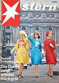| |  | |  | MADAME - Themen z.B.: "Modische Bedeutung der Chemiefaser", "Liebenswertes Österreich", "EWG-Tagung in Brüssel" | | stern - Titel: "Pariser Enthüllungen - Die Dame zeigt wieder Rückgrat" | | MADAME - Themen z.B.: "Sportliche Mode", "Frisuren und Make-up im Frühling" |