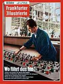 "Wo führt das hin?" Frankfurter Illustrierte - Titel: "Fabriken ohne Arbeiter! Ein Mensch allein bedient hunderte von Maschinen. Das ist die Automation. Ein Schlagwort unserer Zeit, ein Zauberwort. Und morgen? Werden wir morgen arbeitslos sein? Diese Existenzfragen beantwortet unser großer Bericht in diesem Heft." - Weiteres Thema z.B.: "Der Pfahl im eigenen Fleisch - Ein Sonderbericht unseres US-Mitarbeiters Claude Jacoby. Er besuchte, kurz bevor Präsident Kennedy die Waffenblockade gegen Kuba verhängte, den amerikanischen Stützpunkt Guantanamo auf Castros Zuckerinsel."