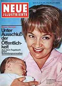 |  | NEUE ILLUSTRIERTE - Titel: "Liselotte Pulver, der Lausbub des deutschen Films, mit ihrem Sohn Marc Tell" - Thema z.B.: "Sportler aus der Retorte?" | | NEUE ILLUSTRIERTE - Titel: "Das große Glück im Hause Schell - Maria und ihr Sohn Oliver" - Thema z.B.: "Wie Deutschlands Städte starben... - Feuerkessel Stuttgart" | | NEUE ILLUSTRIERTE - Titel: "Karin Dor auf dem Kriegspfad mit Old Shatterhand und Winnetou in der ersten Verfilmung einer Karl-May-Erzählung aus dem Wilden Westen "Der Schatz im Silbersee"