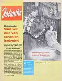 | | | | Jolanthe - "Kundenzeitschrift des Metzgerhandwerks" - Titelthema: Kernwaffenversuche der UdSSR - "Sind wir alle von Strahlen bedroht? Was man von der radioaktiven Verseuchung wissen sollte - Nahrungsmittel speichern unterschiedlich - Vorerst keine Sorge, aber Wachsamkeit!" |