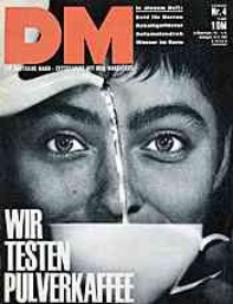 | |  | |  | DM - "Deutsche Mark - Zeitschrift mit dem warentest" - Titel: "Wir testen Pulverkaffee" - Themen z.B.: "Ware ab Lager ist selten geschenkt", "Kultur ist kein Vergnügen" | | QUICK - Titel: "Chile 1962 - Fritz Walter und Hanns Hubmann berichten von der Fußball-Weltmeisterschaft" | | "textil forum" |