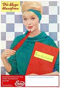 | | Die kluge Hausfrau - "Kundenzeitschrift des Edeka Kaufmanns" | | Die kluge Hausfrau - "Kundenzeitschrift des Edeka Kaufmanns" - Titel: "Schallplattenhören ist meine liebste Beschäftigung" - Themen z.B.: "Skigymnastik", "Vielseitige Ölsardinen", "Wandteppiche", "ABC der Stickstiche" |