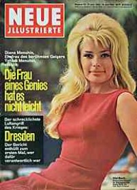 | NEUE ILLUSTRIERTE - Titel: "Vivi Bach - Dänemarks Export im Schaugeschäft" - Thema z.B.: "Der schrecklichste Luftangriff des Krieges: Dresden - Der Bericht enthüllt zum ersten Mal, wer dafür verantwortlich war" | | NEUE ILLUSTRIERTE - Titel: "Dahlia Lavi, zu deutsch: die junge Löwin, spielt in dem Rolf-Thiele-Streifen "Das schwarz-weiß-rote Himmelbett" ein verführerisches Biest, vor dem kein junger Mann sicher ist."