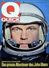 | |  | QUICK - Titel: "Colonel John Glenn war "nur" der dritte Mensch, der die Erde umkreiste. Die Russen Gagarin und Titow flogen vor ihm. (...) Der Amerikaner ist der erste Raumfahrer, bei dem die Welt das phantastische Abenteuer in allen Einzelheiten miterleben kann." | | QUICK - Titel: "Von Millionen geliebt: Königin Elisabeth feiert im Kreise ihrer Familie Geburtstag" - Thema z.B.: "Reiseland Amerika: Urlaub der unbegrenzten Möglichkeiten" | | stern - Titelthema: "Das Leben beginnt mit Fünfzig - Mit Fünfzig ziehen sich viele amerikanische Rensionäre in "Altbürgerstädte" zurück, in denen sie, ganz unter sich, bei Spiel und Sport ihr Alter vergessen wollen." |